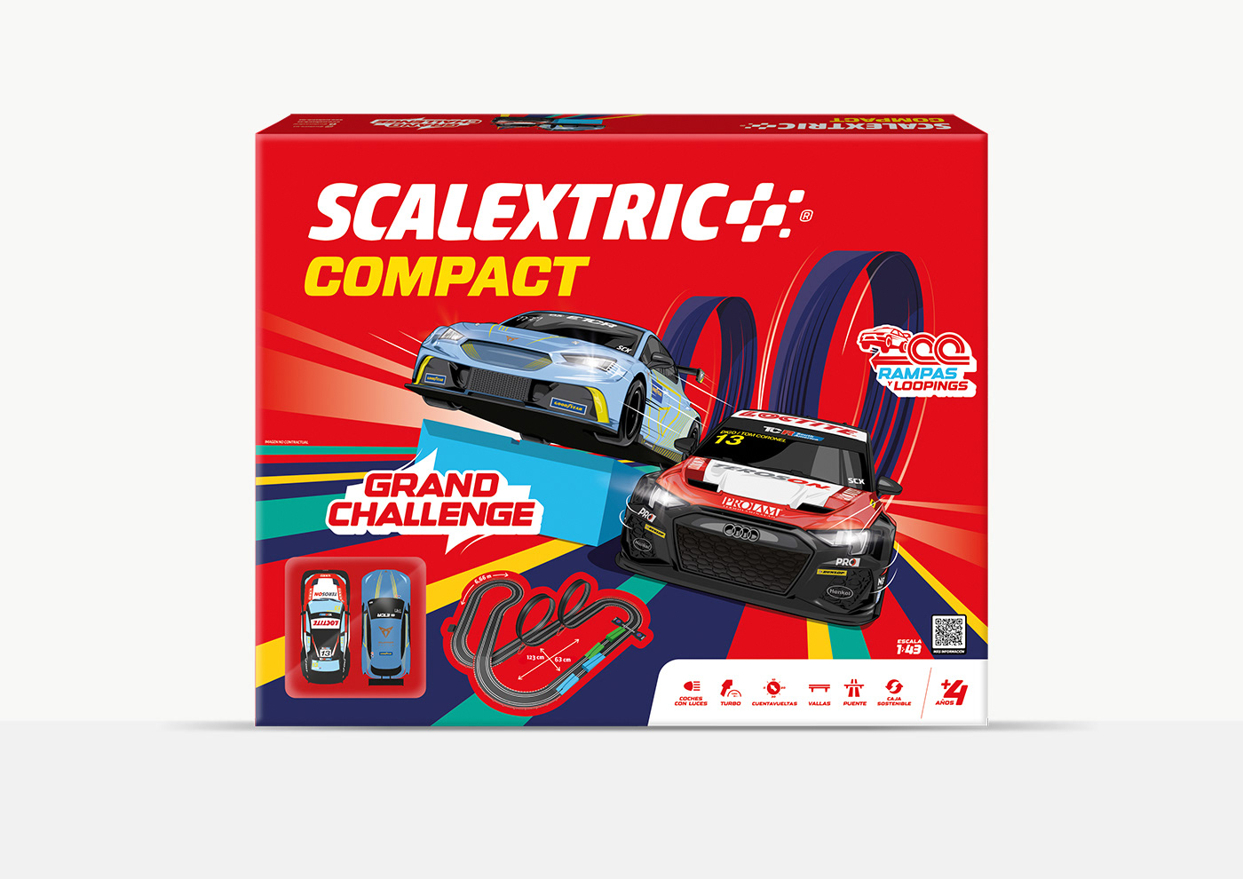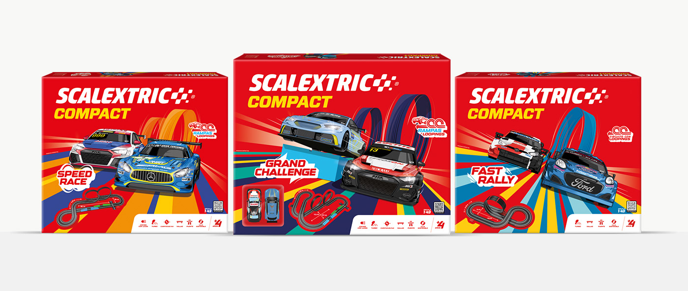 The illustrations will be organized into 3 packs, each containing 2 cars, designed as collectible items that reflect the brand’s spirit and the excitement of racing. Each car will be portrayed with a striking visual style, highlighting its unique character and conveying the energy and speed that define the Scalextric universe.
