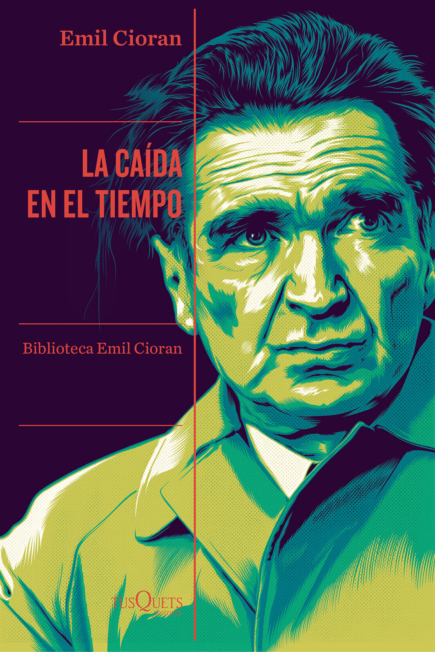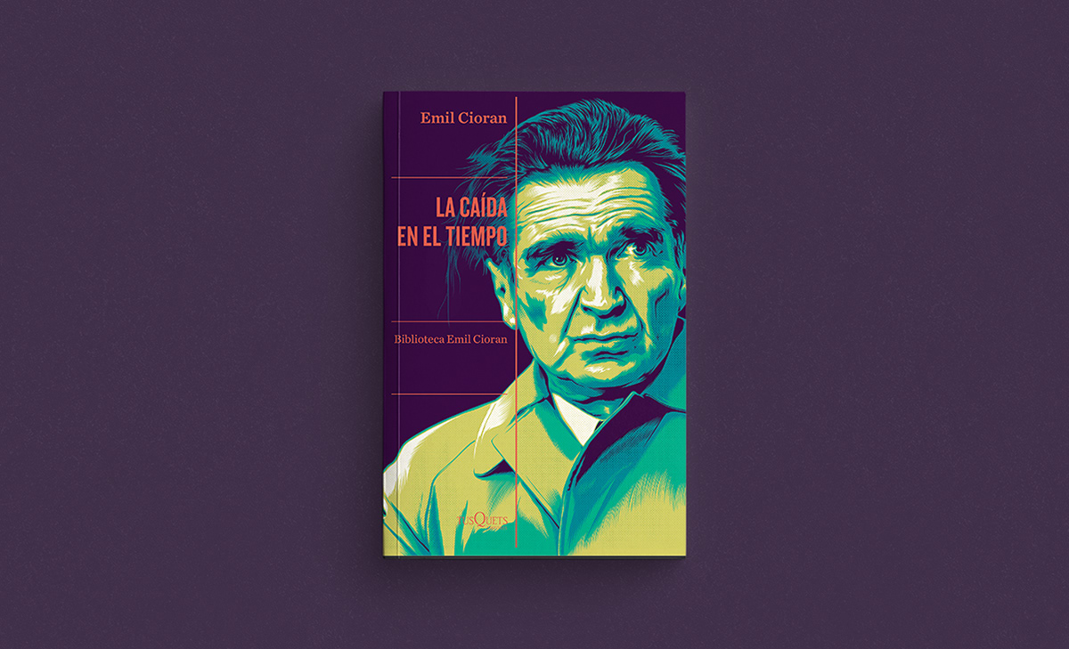 Illustration of the cover of the book "La caída en el tiempo", written by Emil Cioran and published by Tusquets Editores.